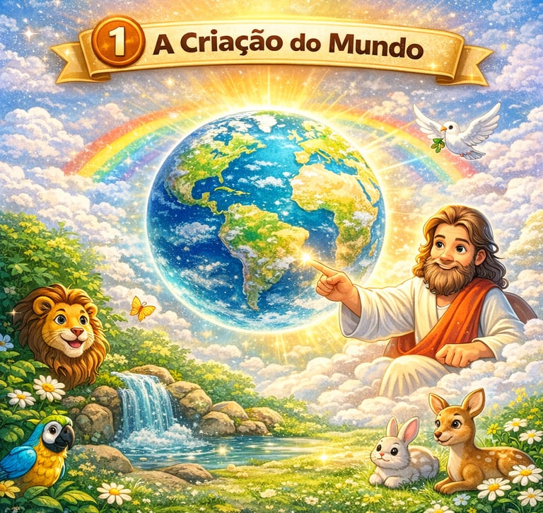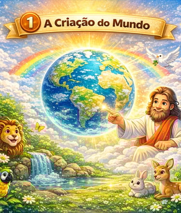 A história da criação do mundo ensinada de forma leve, visual e envolvente para crianças