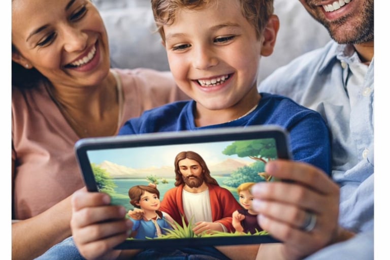 Pais que decidiram substituir conteúdos vazios por algo que realmente ensina. Hoje, seus filhos assistem histórias bíblicas, aprendem valores cristãos e crescem mais conectados com Deus.
