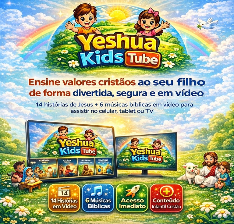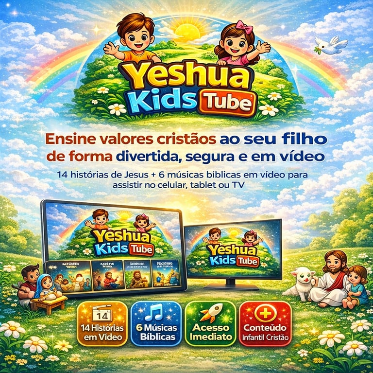 YESHUA KIDS TUBE foi criado para ser uma alternativa segura, educativa e cristã, ajudando seu filho a crescer com princípios enquanto se diverte